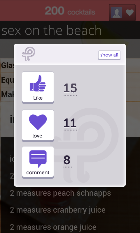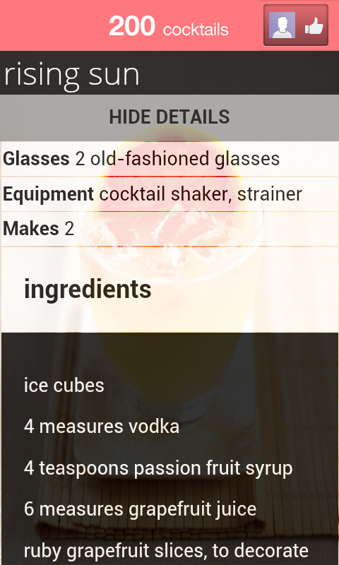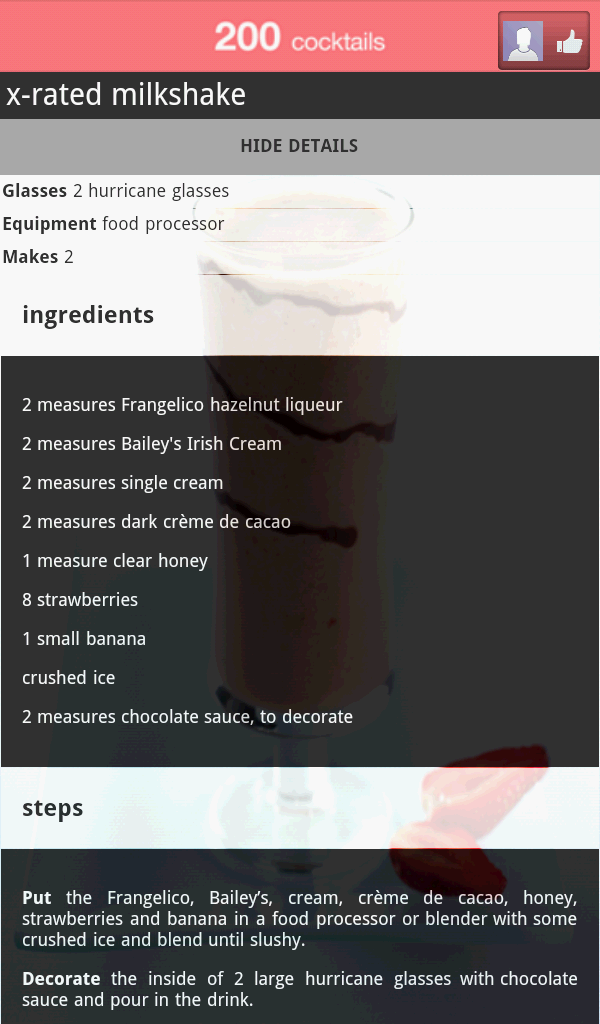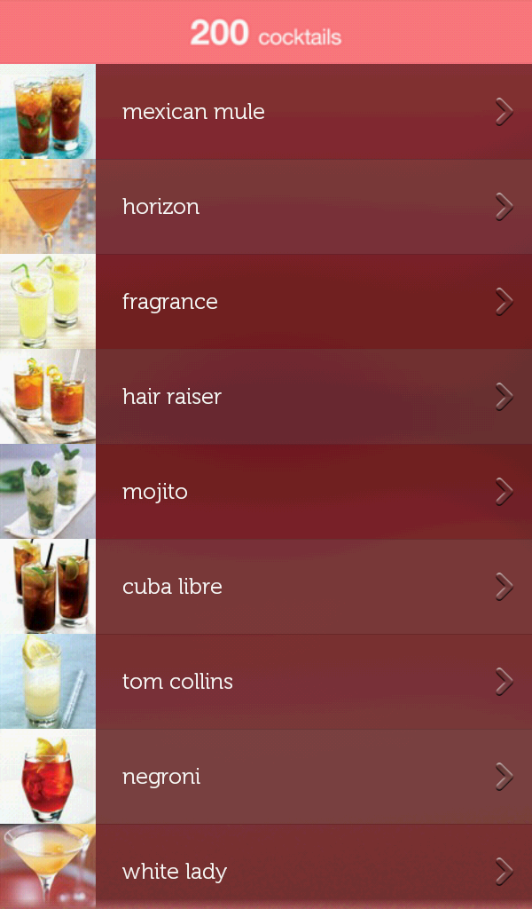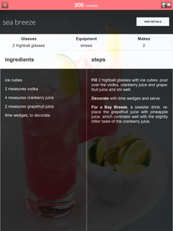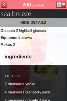 Everyone enjoys a fancy tipple from time to time, whether partying among friends or taking a moment alone to relax, but sometimes you need more than just a rum & coke. This app provides you with over 200 recipes to create the perfect drink for any occasion, from a minty Mojito or classic Margarita to a sophisticated Champagne Cocktail or exotic Russian Spring Punch. With colour photographs and easy-to-follow recipes, this app is the essential guide to impressing your guests and making your drinks toast of the town.