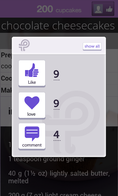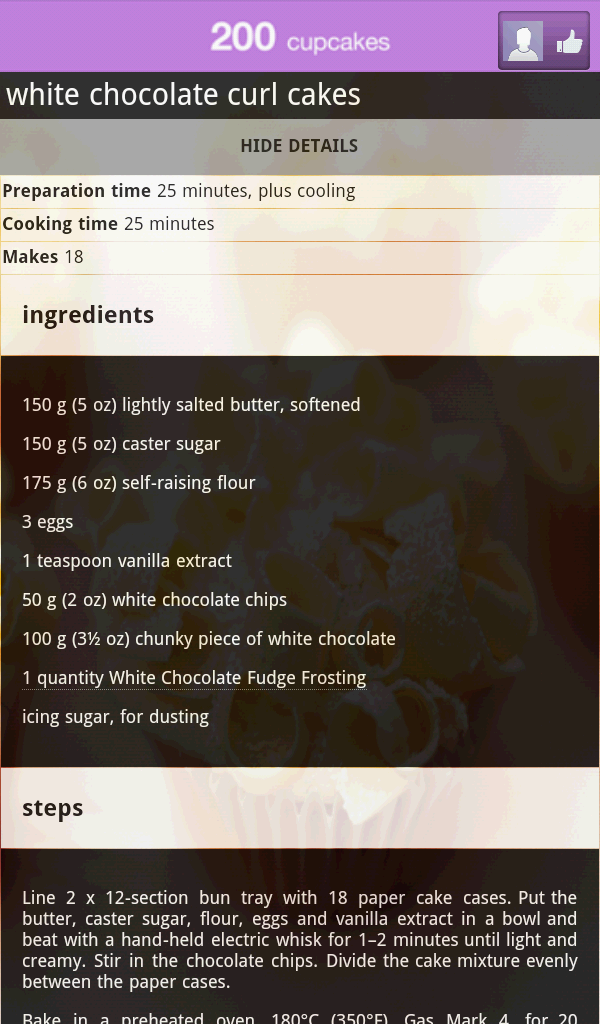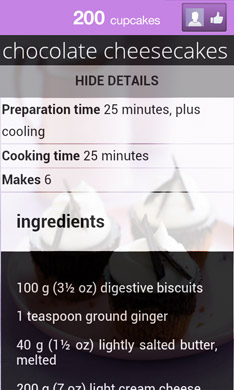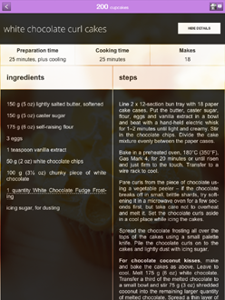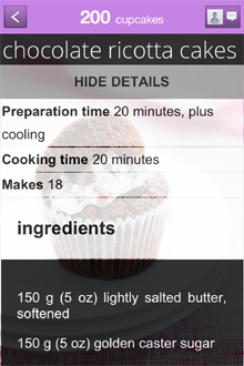 Cupcakes are a delectably indulgent treat - and so quick and easy to make! From colourful cakes to keep the kids entertained to sophisticated recipes for special occasions – this app has something for everyone. Why not treat yourself to some gorgeous mocha cupcakes or delight a friend on their birthday with some maple, pecan and white chocolate muffins? Each recipe is accompanied by easy-to-follow instructions and a colour photograph to ensure perfect results every time.