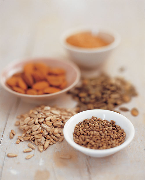 Seeds can be thrown into smoothies for super boosts of a whole host of vital nutrients. Flax seeds, sesame, pumpkin and sunflower seeds are rich in protein, A, D, E and B complex vitamins, as well as minerals and unsaturated omega-3 fatty acids. Because of their oil contents they should be kept in the refrigerator or the oils will oxidize, spoiling their taste and nutritional value.