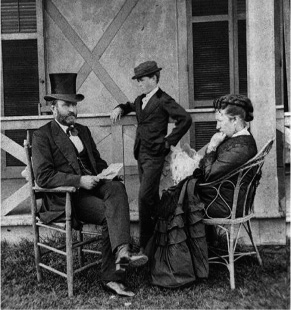President Grant in a c. 1872 photo with his son, Jesse, and wife, Julia.