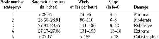 The Saffir/Simpson Hurricane Damage-Potential scale assigns numbers 1 through 5 to measure the disaster potential of a hurricane’s winds and its accompanying storm surge. The purpose of the scale, developed in 1971 by Herbert Saffir (1917–2007) and Robert Simpson (1912–), is to help disaster agencies gauge the potential significance of these storms in terms of assistance.