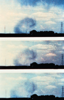 Air particles clearly reveal a dangerous microburst. Sometimes, airplanes can be caught in these dangerous bursts of air. (NOAA Photo Library, NOAA Central Library; OAR/ERL/National Severe Storms Laboratory)
